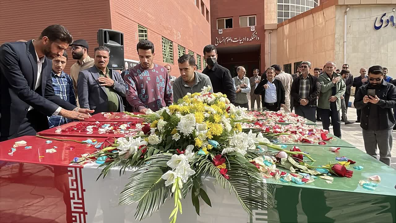 مراسم استقبال از پیکرهای مطهر شهدای گمنام تازه تفحص شده دوران دفاع مقدس در دانشگاه یاسوج